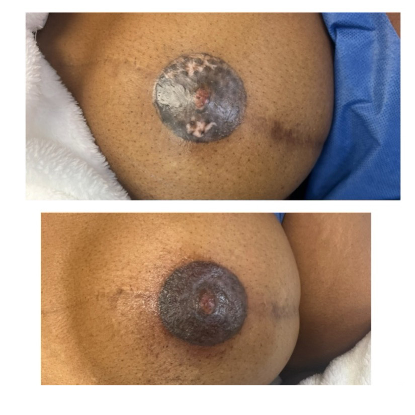 A permanent tattoo that uses shading and color variations to create the appearance of a natural nipple and areola. We customize a color that’s best for your skin tone by color matching during your initial visit. We carefully measure and draw before we move forward with the final step. After initial procedure, one touch up is recommended 4-6 weeks later.